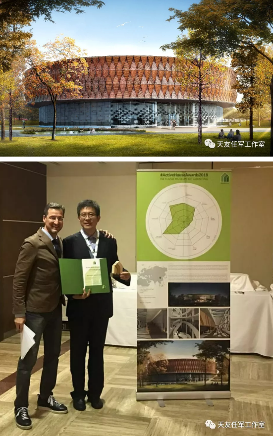 2018年11月7日,Active House國(guó)際聯(lián)盟在意大利米蘭的萊科小鎮(zhèn)頒發(fā)了Active House Awards 2018國(guó)際主動(dòng)式建筑獎(jiǎng),在全球范圍內(nèi)共評(píng)選出四大獎(jiǎng),天友首席建筑師任軍入圍兩項(xiàng),最終 “官?gòu)d濕地博物館” 榮獲一項(xiàng)大獎(jiǎng)。